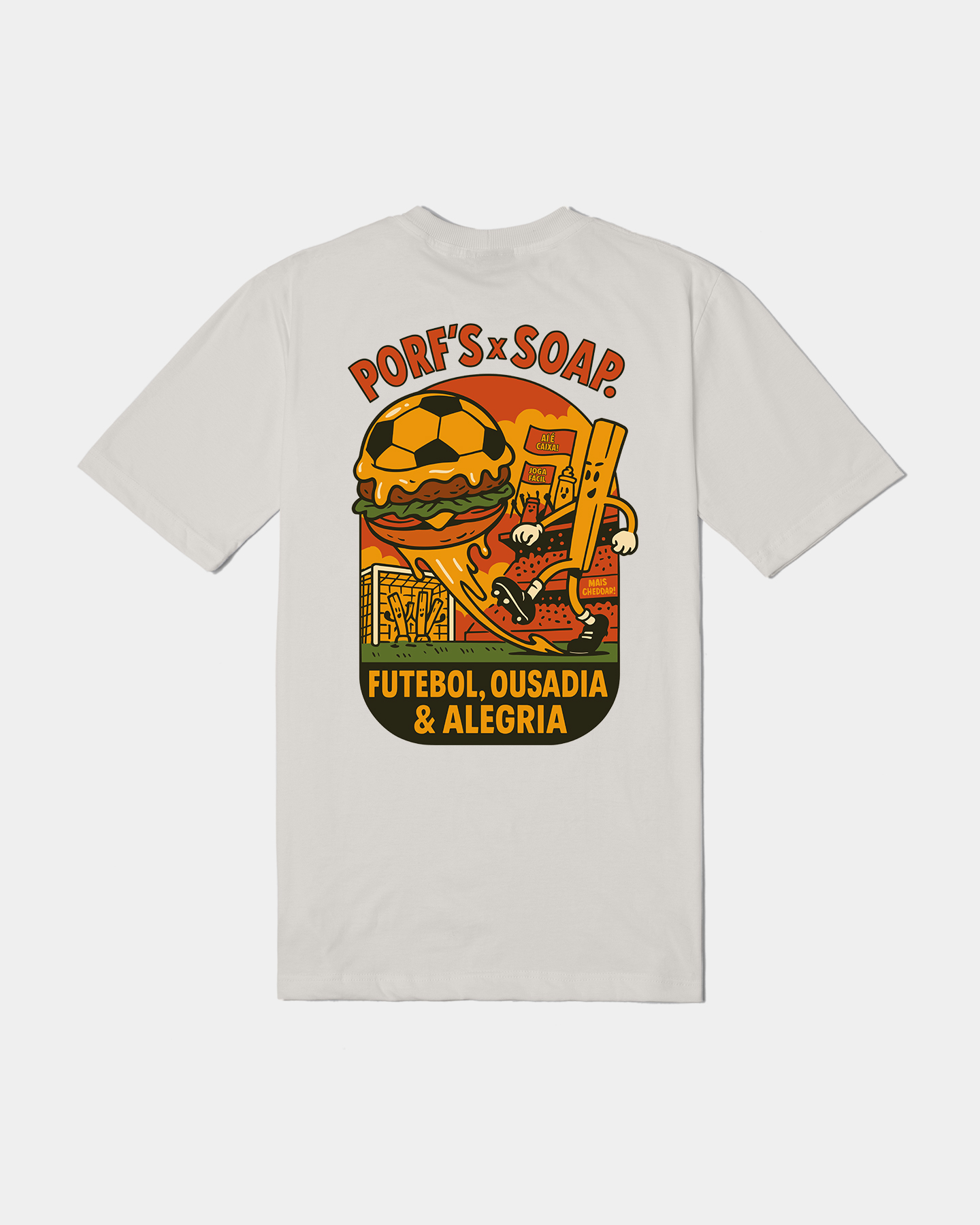 Nova modelagem com caimento estruturado, confeccionada em tecido 100% algodão penteado, fio 26.1, com 200g/m² — Gola 2×1 canelada com 3 cm de largura, garantindo acabamento reforçado e visual robusto. Estampa em silkscreen de alta durabilidade e patch com logo Soap.