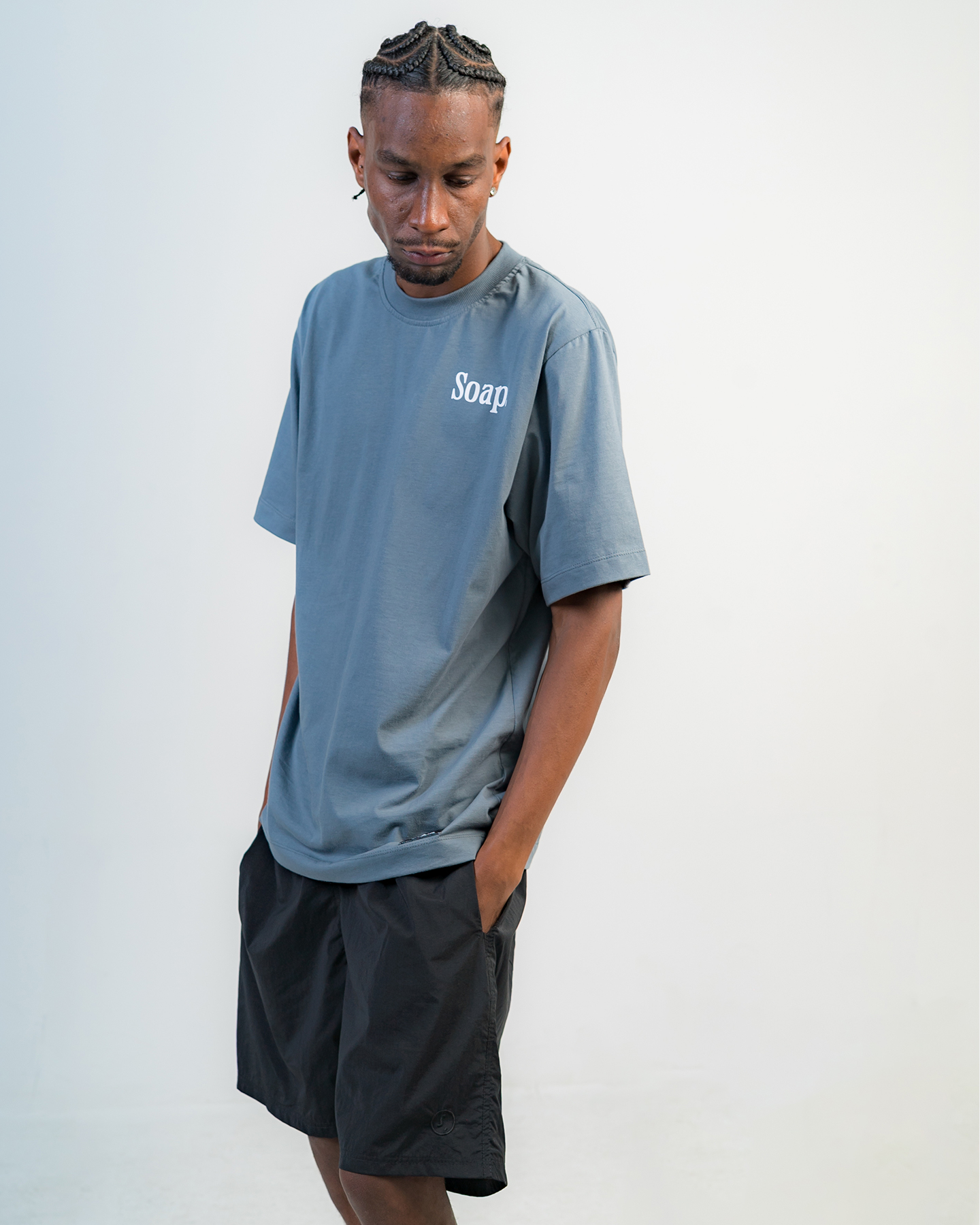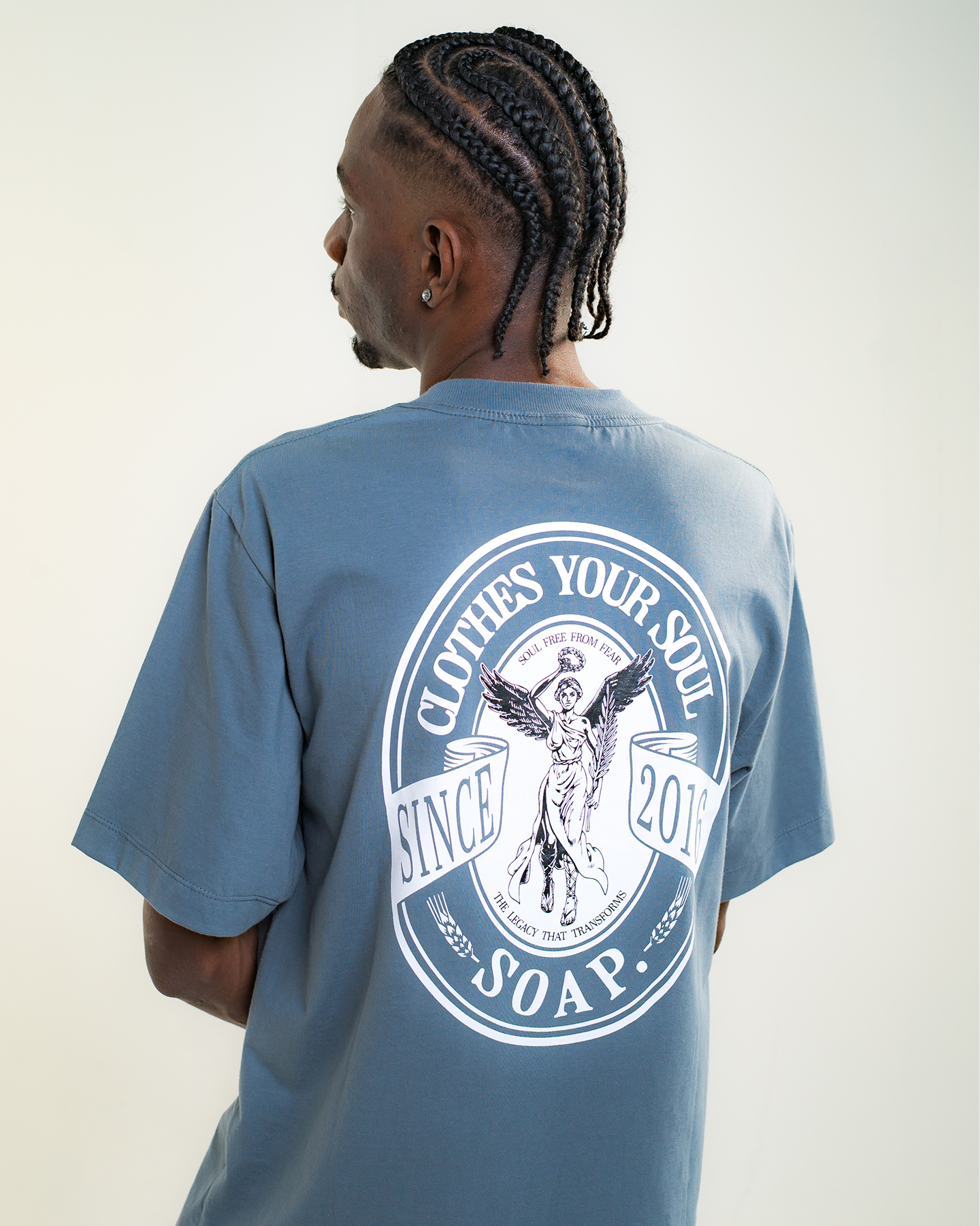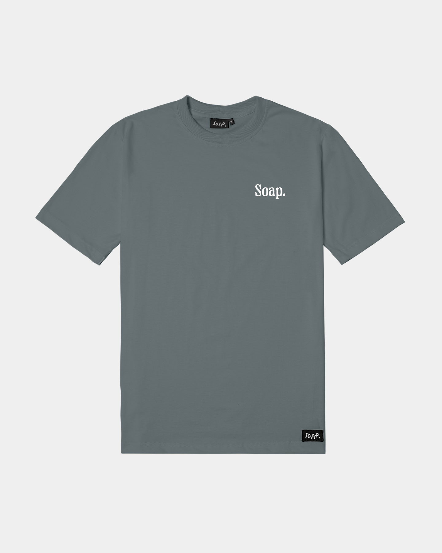 Nova modelagem com caimento estruturado, confeccionada em tecido 100% algodão penteado, fio 26.1, com 180g/m² — Gola 2×1 canelada com 3 cm de largura, garantindo acabamento reforçado e visual robusto. Estampa em silkscreen de alta durabilidade e patch com logo Soap.
